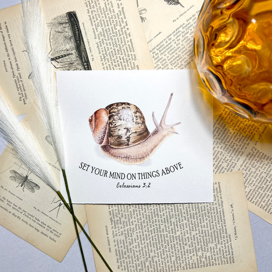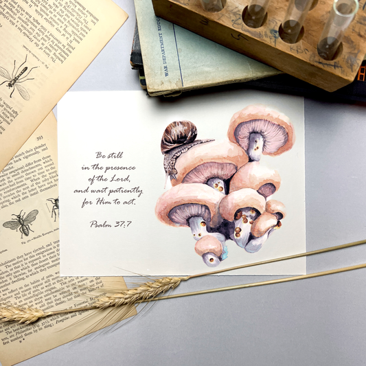 Snail and Mushroom Scripture Art Print - Psalm 37:7