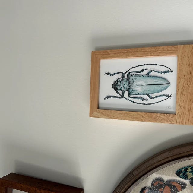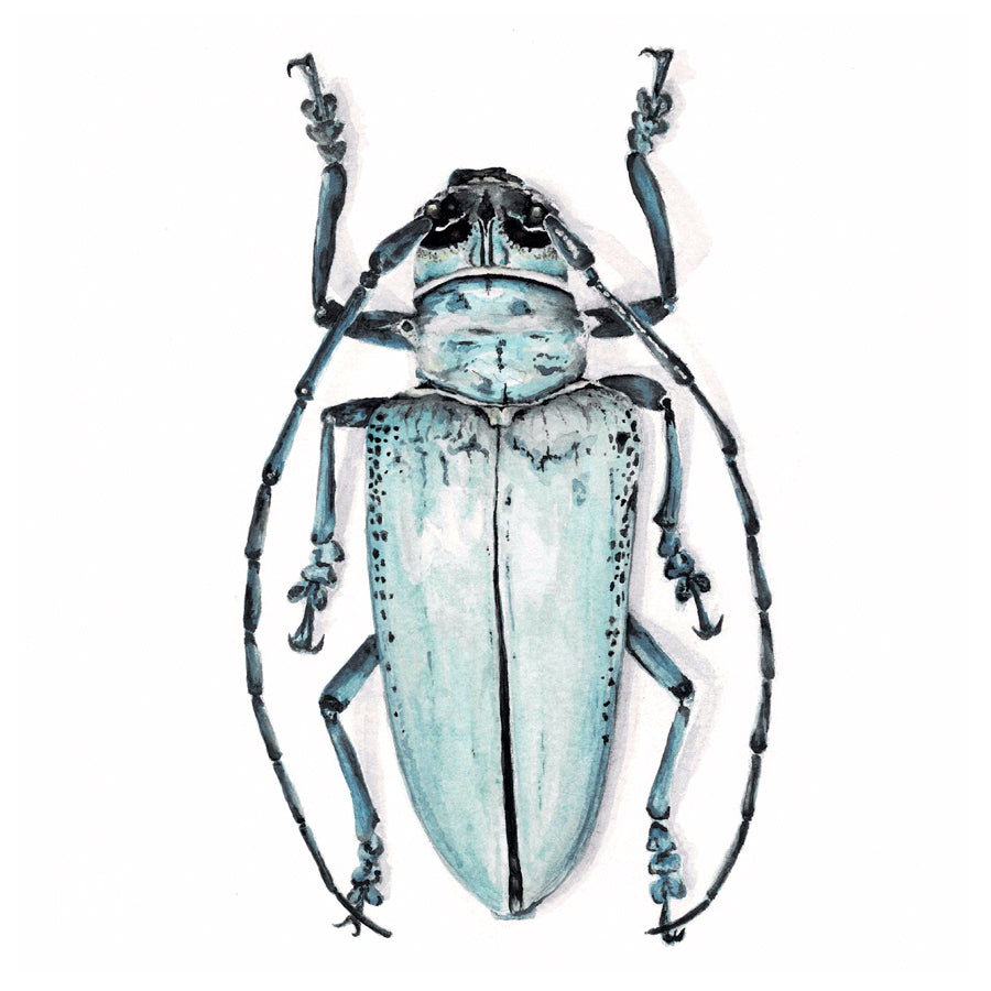 This is a fine art print of my original watercolor painting. This piece was inspired by the longhorn beetles I often collected as a kid and was created in my personal studio in the Southwest region of Wisconsin.