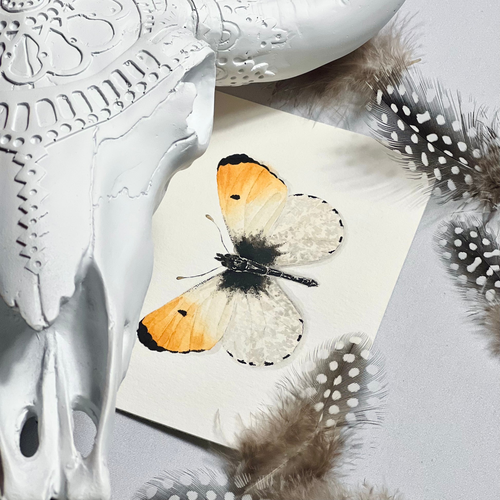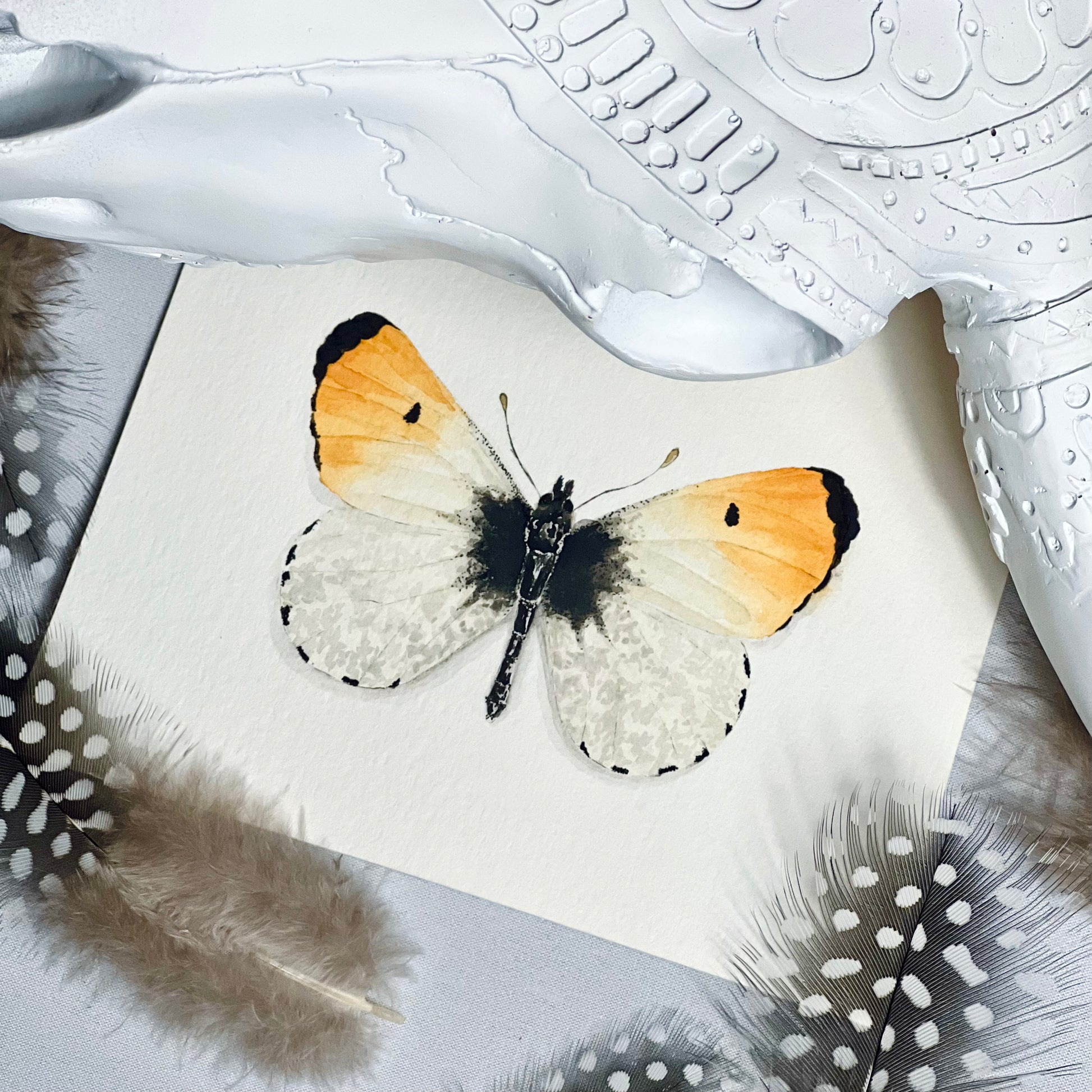 This is a fine art print of my original watercolor painting. This piece was inspired by the Falcate Orangetip Butterfly which are both native to Wisconsin summers. The original painting was created in my personal studio in the Southwest region of Wisconsin.
